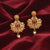 These magnificent Dangle Earrings are a true statement piece, reminiscent of royal Kundan and Rajwari designs. They feature intricate antique gold filigree work shaped like a large floral medallion, accented with deep red stones (ruby style) and tiny pearls. The matte finish gives them an expensive, classic heirloom look, perfect for major traditional events.