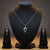 Design: An artistic leaf-style pendant with a signature sapphire-tone drop and matching earrings.